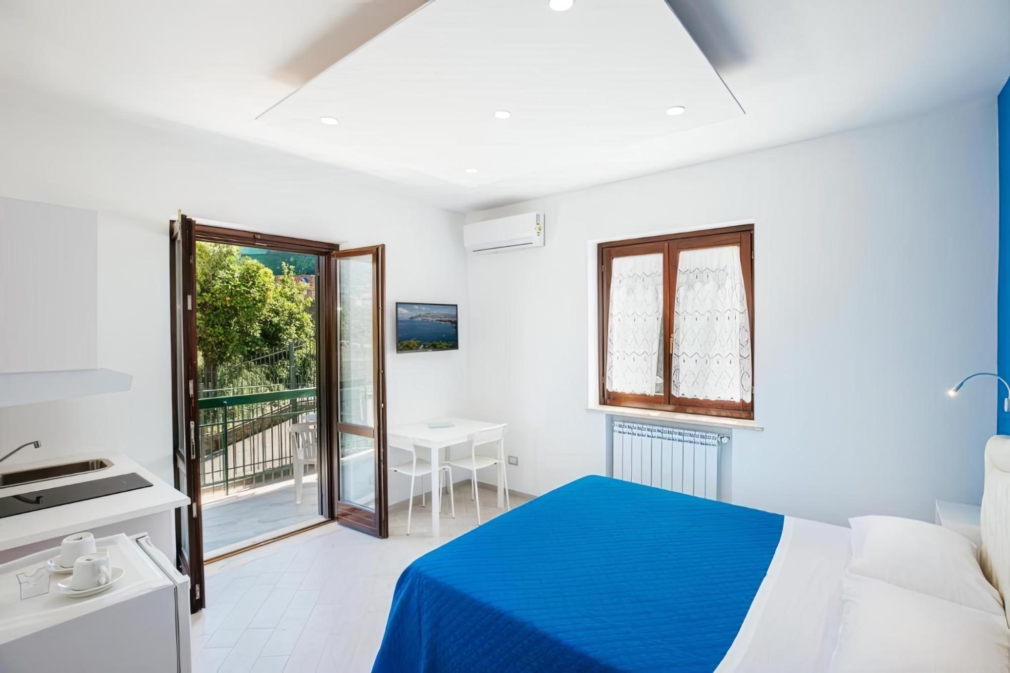 All’esterno, una piccola terrazza e un giardino permettono di godere della quiete e del verde circostante. La posizione strategica consente di raggiungere facilmente le principali attrazioni della penisola sorrentina, pur rimanendo in una zona silenziosa e rilassante. La spiaggia La Marinella si trova a 1,6 km, mentre il porto turistico di Sorrento dista circa 2 km.